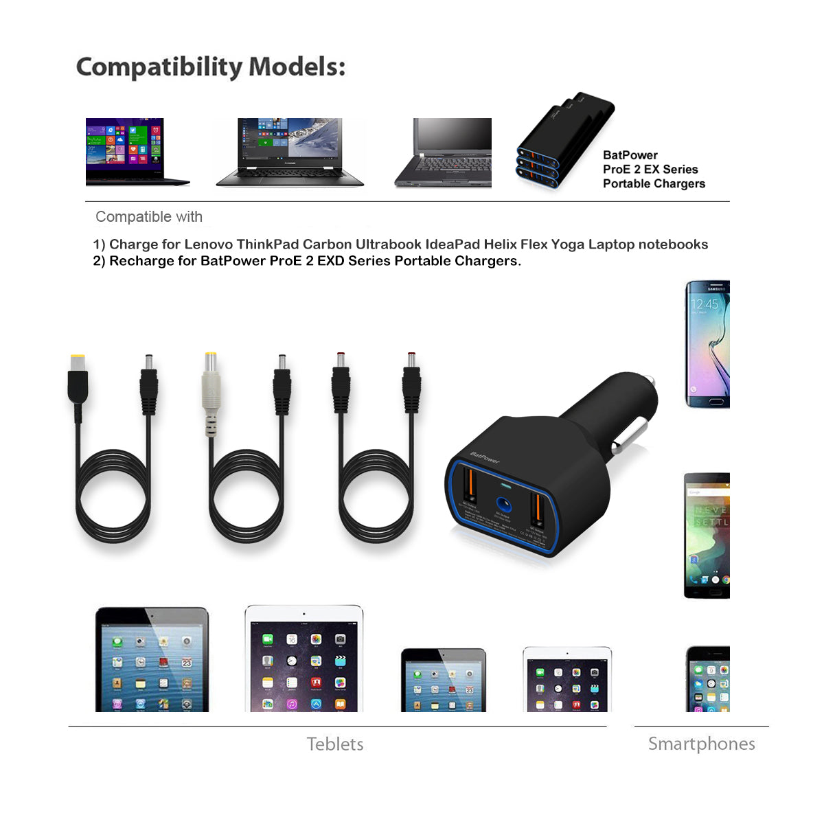 DC port output (90W): Maximum power delivery for Lenovo ThinkPad, IdeaPad, Ultrabook, Carbon, Yoga, Helix Laptop Car Charger