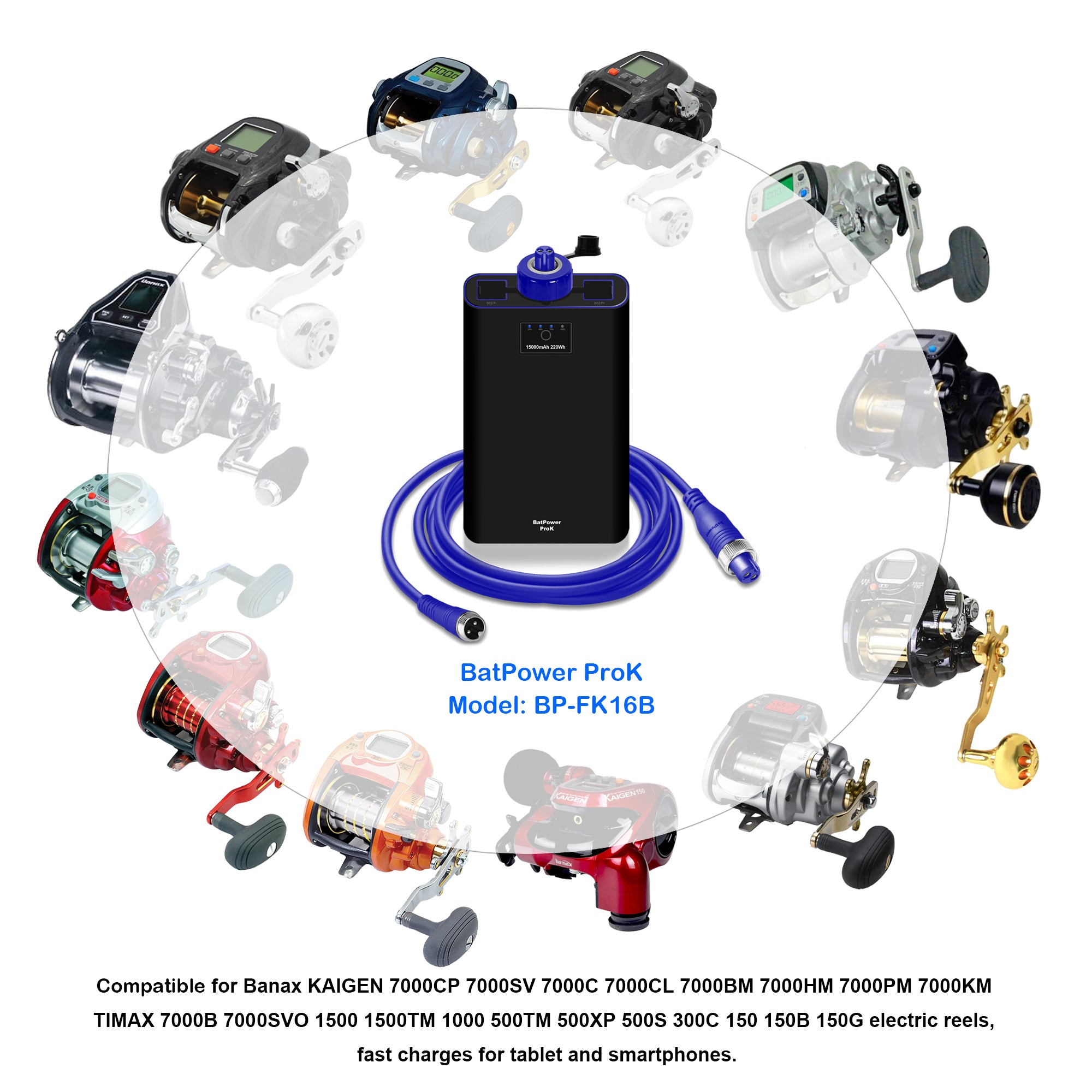 BatPower ProK electric fishing reel battery compatible for Banax Kaigen electric fishing reels:
