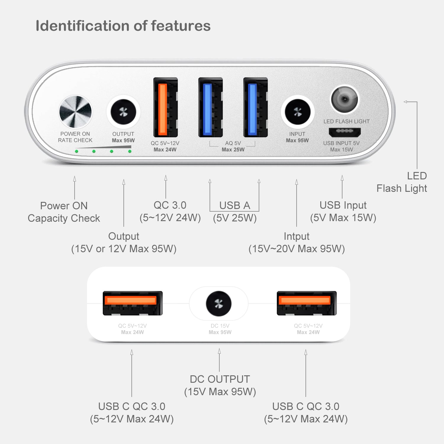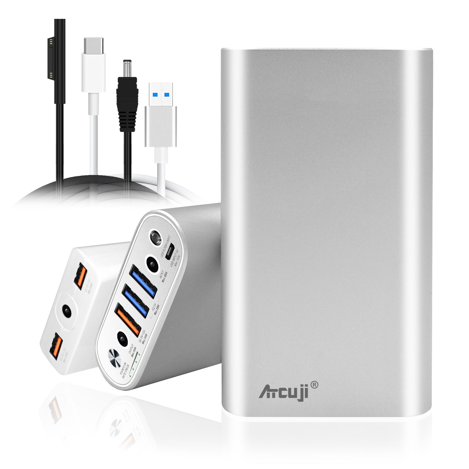 External Battery and Slim adapter each DC port output (95W): Maximum power delivery for Microsoft Surface laptops or tablets