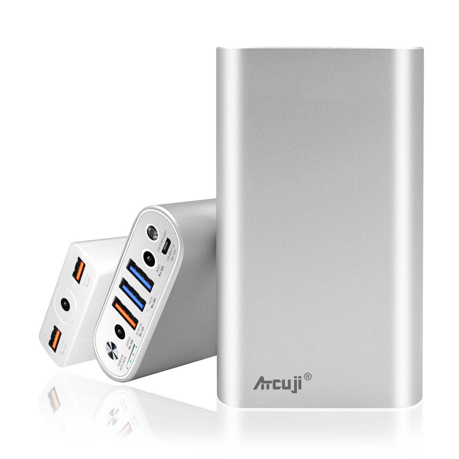 External Battery and Slim adapter each Quick Charge 3.0 USB orange port output (24W): Maximum power delivery for tablets and smartphones with Fast-Charging