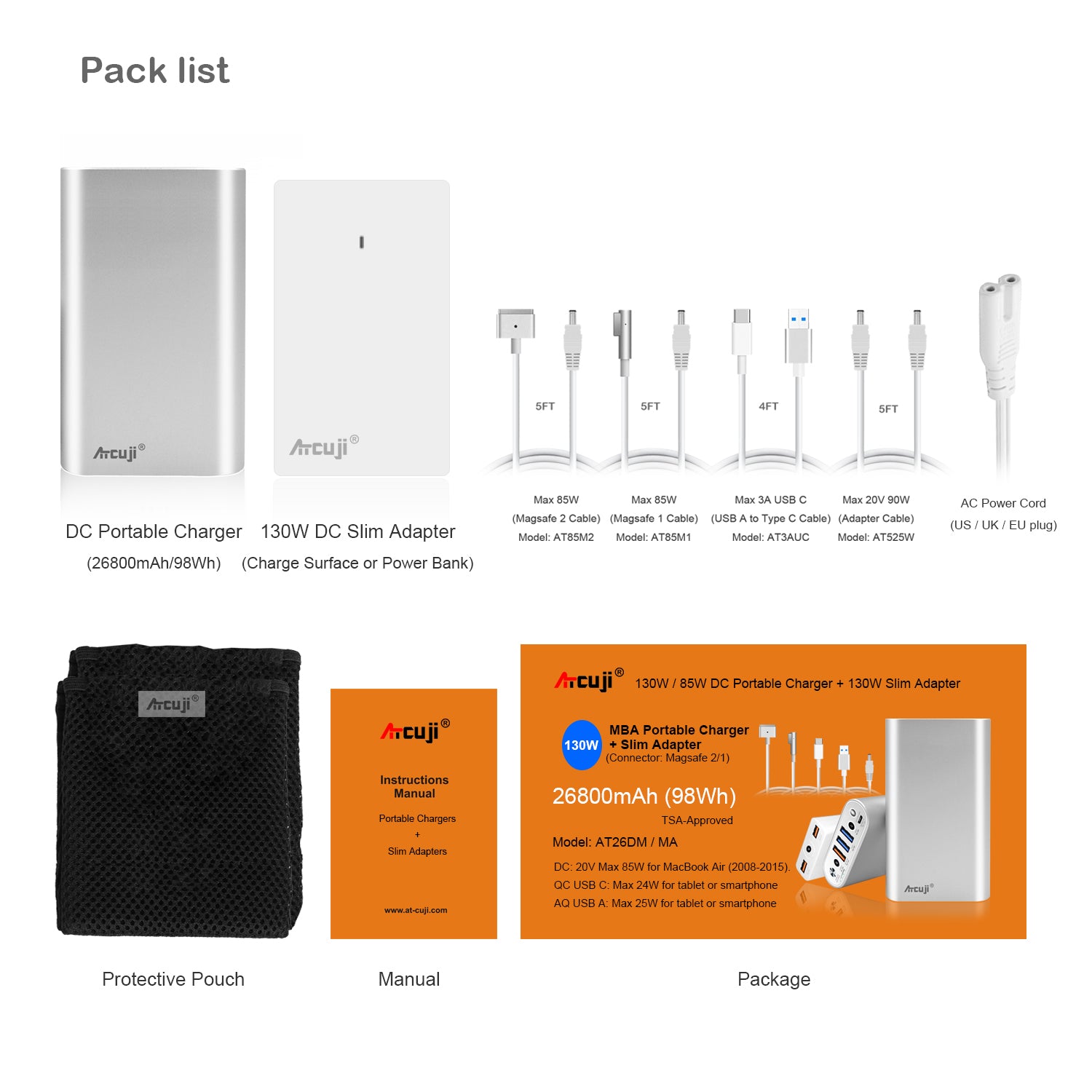AT 26800mAh/98Wh Portable External Battery with 13MA 130W Power Delivery Slim adapter