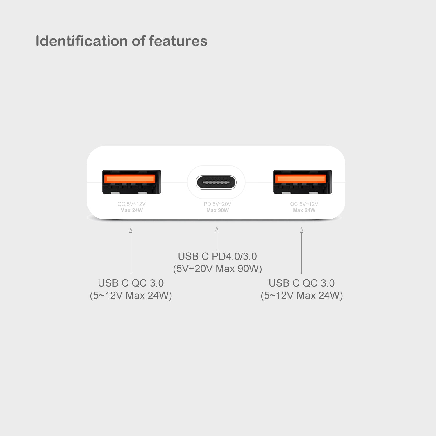 PD port output (90W): Maximum power delivery for PD USB-C laptops and tablets (list of compatible models)